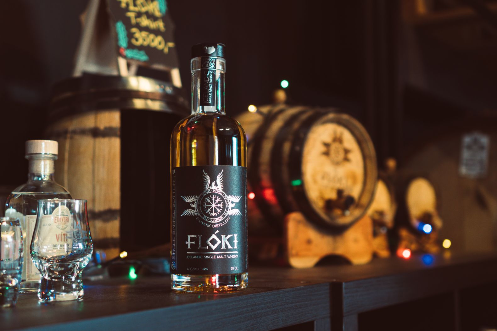 So wie Hrafna-Floki auf seiner Reise immense Strapazen auf sich nehmen mußte, so erfordert der Floki Whisky besonderen Aufwand. Da das robuste isländische Getreide wenig Stärke enthält, muß etwa doppelt soviel Gerste pro Flasche für Floki verwendet werden wie üblich. Und da es auf Island keinen Torf gibt, wird für die rauchige Whisky-Variante Schafsdung geräuchert.
